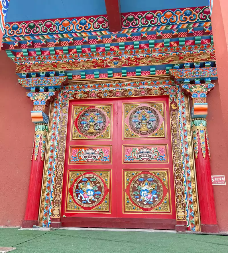 The temple is not large, but the main hall is gilded with copper roof, Carved beams and painted beams, golden pillars, treasure vases, and lotus flowers on the eaves soar straight into the sky, which is quite imposing.