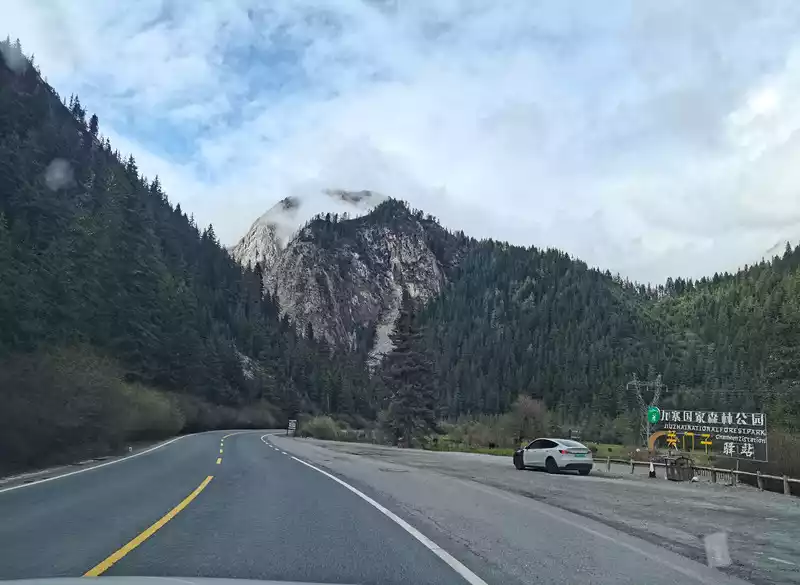 to the scenery Today, the chartered car went to Jiuzhaigou, More than 400 kilometers away, some sections are not high-speed, and you have to see the scenic spots on the way, and the driver said to leave early, and set off at 8 o'clock after breakfast.
