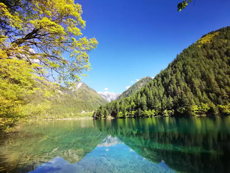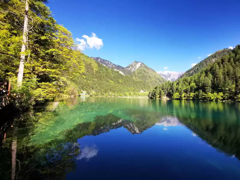 Jinghai, one of the famous attractions in Jiuzhaigou , a good place to watch the water in Jiuzhai. It is like a mirror, replicating the scenery on the ground and in the air to the water without distortion.