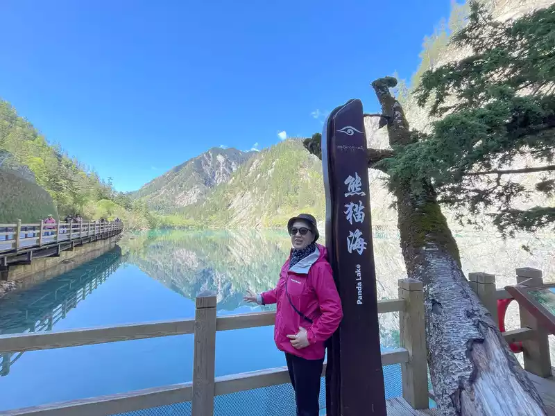 Panda Sea, 2587 meters above sea level, lake depth 14 meters, It covers an area of about 62 square kilometers. It is said that the giant pandas of Jiuzhaigou like to come here to wander, drink water, and forage the most, so this lake is named Panda Sea.