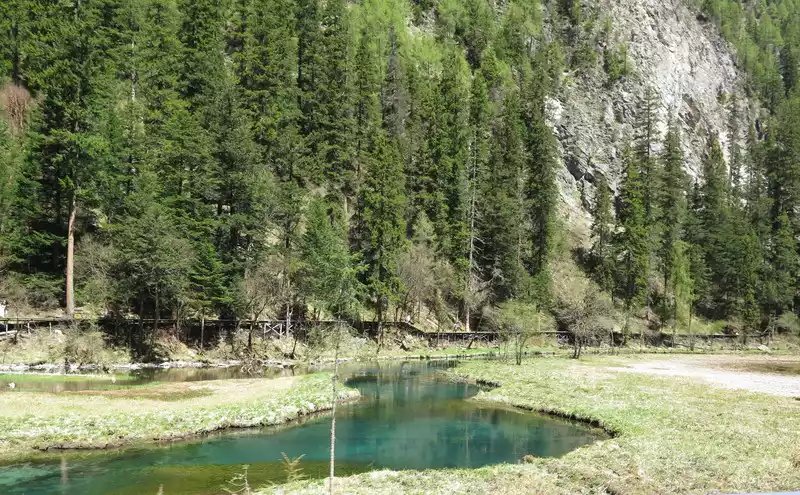 Even in winter, the sea of arrow bamboo does not freeze, It is one of the lakes in Jiuzhaigou that does not freeze in winter.