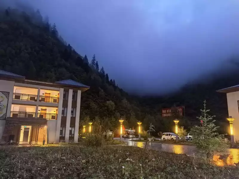 The National Day holiday came to Jiuzhai, coinciding with the opening of the high-speed rail, and Jiuzhaigou's popularity exploded, and the official website showed very early on that the expected number of people entering the park exceeded 40,000 people every day. Therefore, in order to avoid the flow of people, I chose the Ganhai Forest Mountain Residence Hotel 20 kilometers away from the mouth of the valley, and it was a wise move to be happy after checking in. This hotel is located next to the love sea view area, and it is said that the owner contracted the management and operation of the entire scenic spot, so all guests can also visit the love sea for free. In addition, the hotel also provides a pick-up service and a shuttle service to Jiuzhaigou Scenic Area, which means that you can basically travel worry-free after check-in. The hotel is embedded in the mountains, surrounded by green mountains when you go out, full of relaxation.