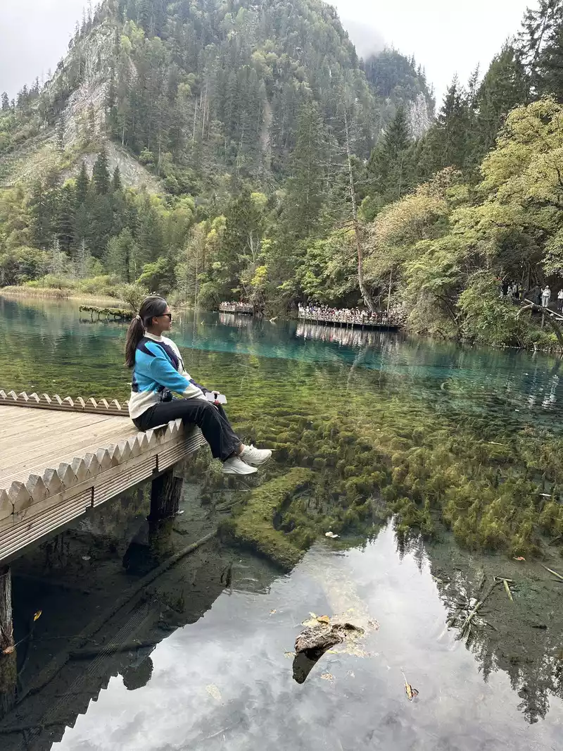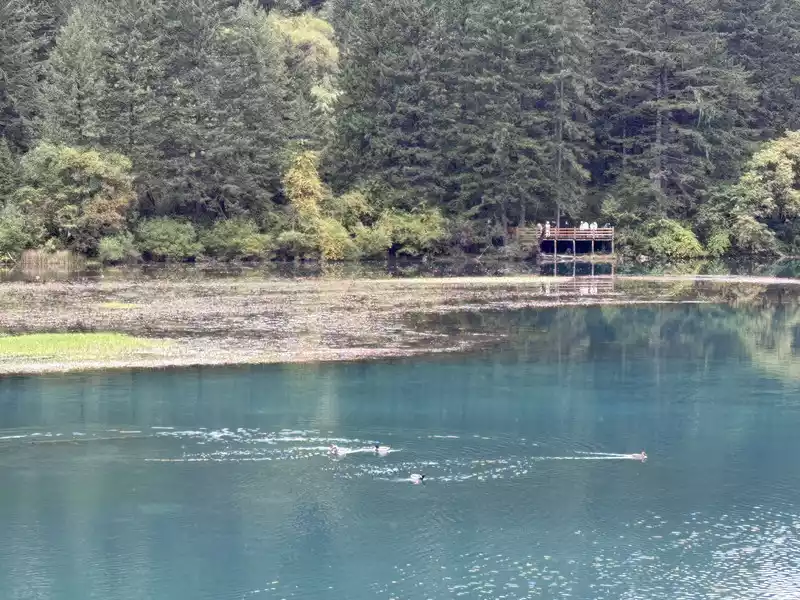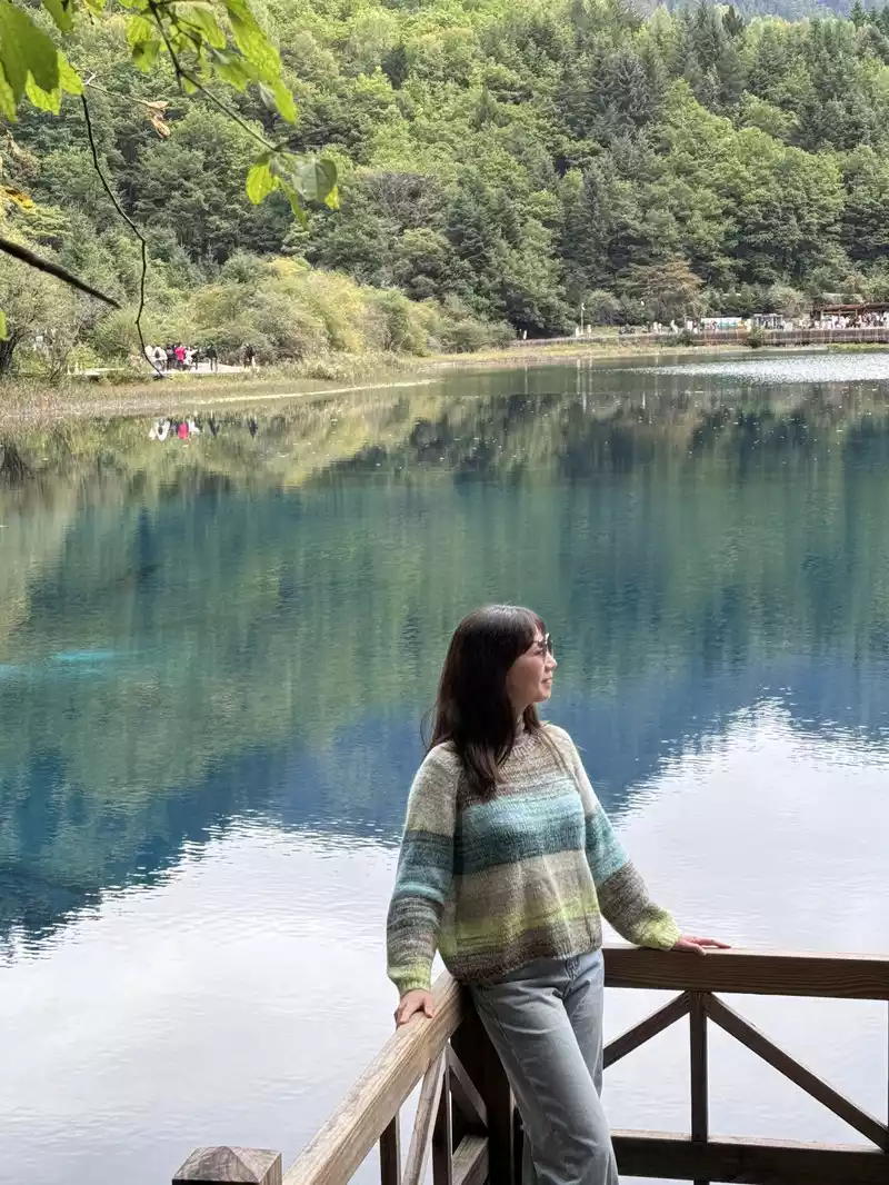 Jiuzhaigou in early autumn is incredibly beautiful, sometimes misty and rainy, clouds and mist; Sometimes the sun shines and the colors are gorgeous. The 114 large and small lakes are different, just like women in the world have different postures and temperaments. Changhai, the highest altitude and the largest area, can be described as the first of the seas, she is like a lady and dignified atmosphere, high at the top of Chawagou at an altitude of 3,100 meters. The one-armed old man Bai stood by the long sea like a guard, always watching and protecting her, and perhaps there was a legendary love story between them. The colorful pool is the smallest but most gorgeous of all the seas, she is like a sapphire inlaid in the jungle, the sun shines on the water, and the blue is more and more dazzling. The sea of arrow bamboo is like a dark green mirror, reflecting the shadows of mountains and trees, showing the beauty of Jiuzhaigou in its own unique way. Look, a flock of little mallards swam by, broke the mirror, and soon the mirror was back to its original state. Walking down the Arrow Bamboo Sea, through the lush woods, along the plank road to the Five Flowers Sea. Wuhuahai is also the essence of Jiuzhaigou, and it took a week around Wuhuahai to find that the scenery of Wuhuahai from different angles is different. The mystery lies in the dense plants growing at the bottom of the lake, which have not rotted or faded for many years, but have become the most beautiful decorations in the sea of flowers, just like a dressed woman and the jewelry she wears, which complements the beauty of the sea of flowers. As the name suggests, there are large reeds growing around Haizi, and the golden reeds sway in the wind in autumn, like the long hair of a beautiful woman, soft and elegant, in response to the poem: "Light makeup and heavy makeup are always suitable".