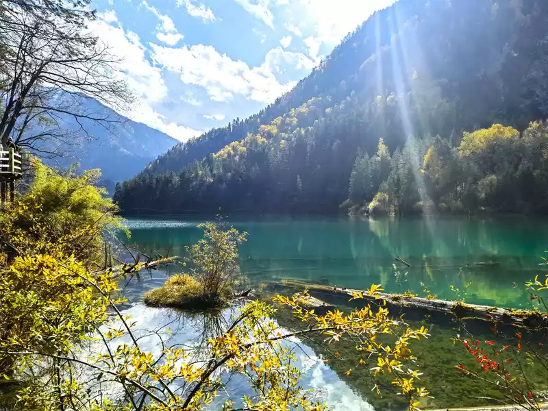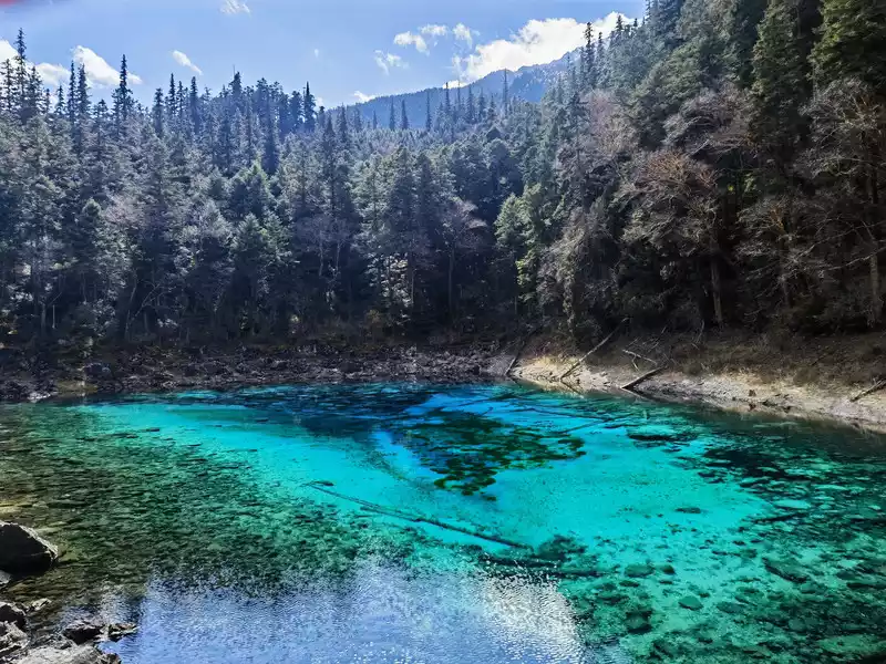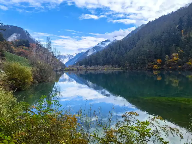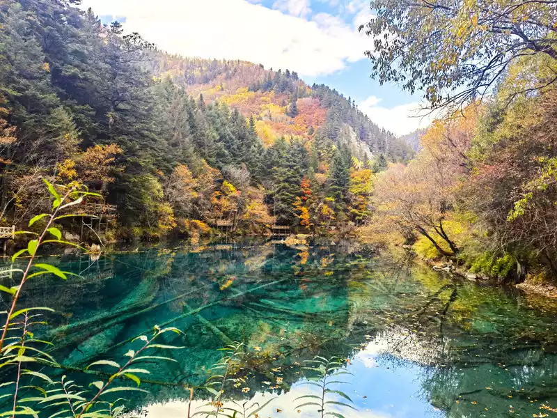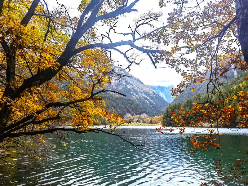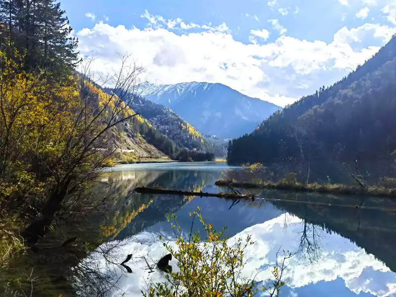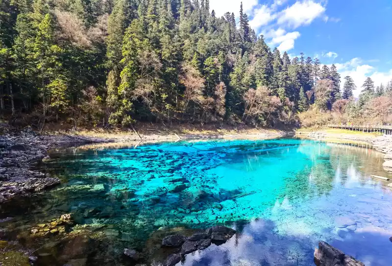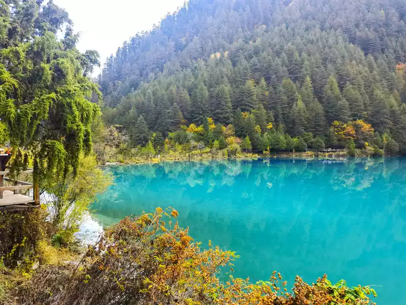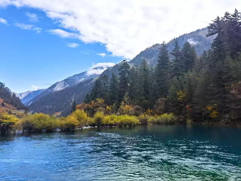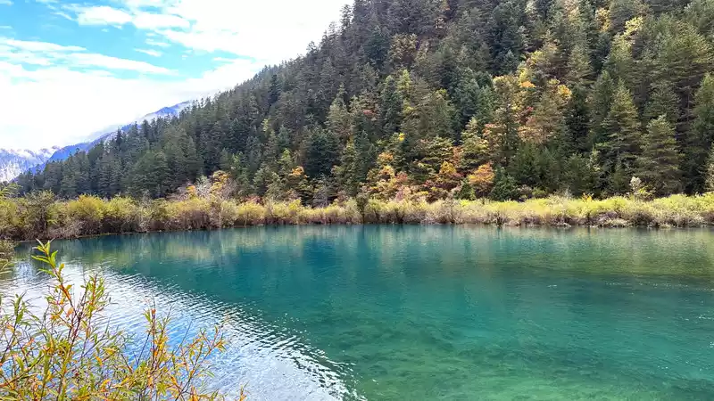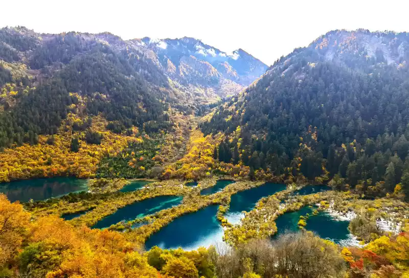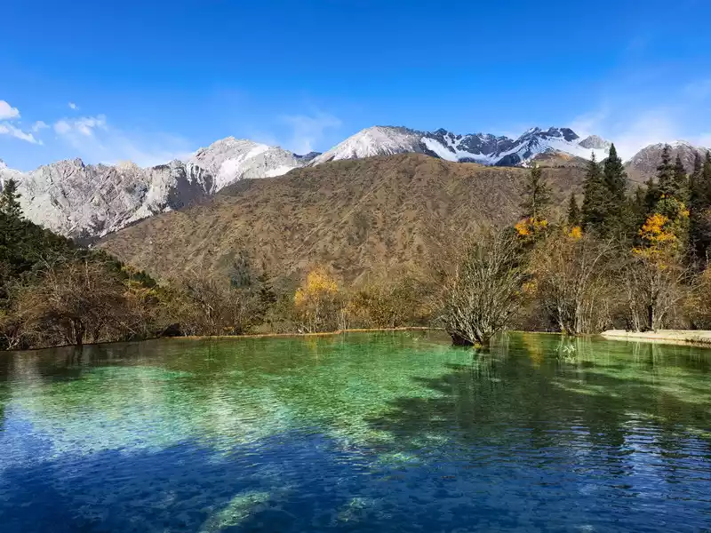 Jiuzhaigou is famous for its unique landscape scenery on the western Sichuan Plateau, with large and small plateau lakes dotted with pure lakes, majestic snow-capped mountains, and blue skies, and a gorgeous and vivid picture as far as the eye can see. In spring and summer, it is surrounded by green trees and is green. In late autumn, the forests are dyed and colorful. After the heavy snow, the silver is wrapped in white, quiet and deep. Jiuzhaigou changes different scenery throughout the year, showing a different kind of beauty.