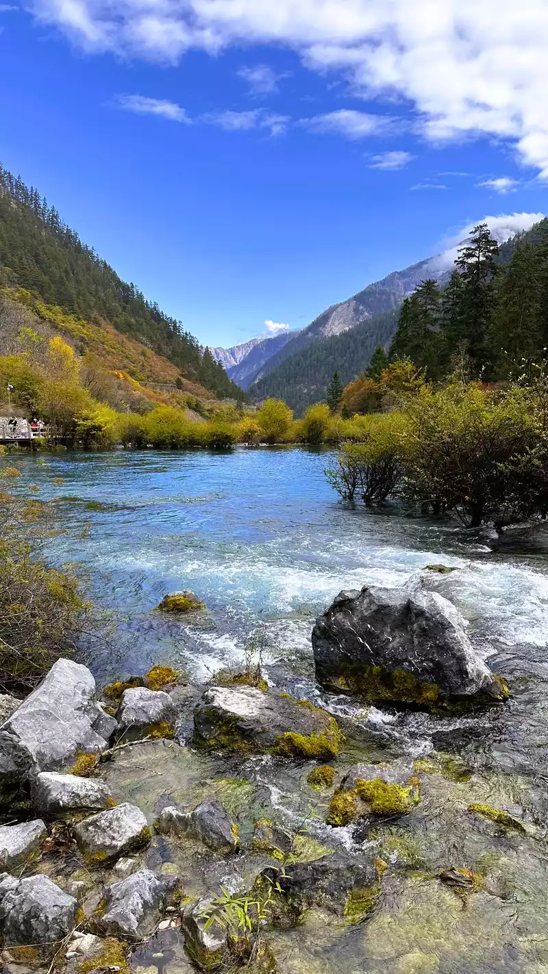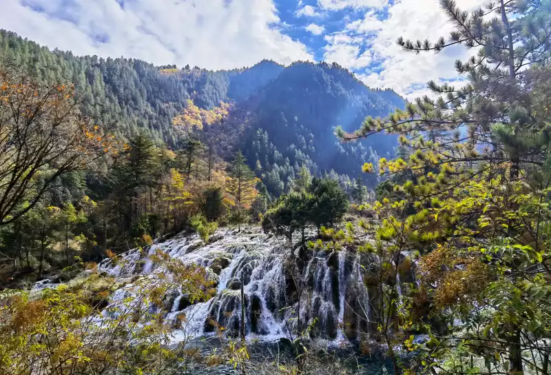The waterfall of Jiuzhaigou jumps and frolics in the valley like elves, adding endless vitality and vitality to this magical land.Some waterfalls are like the Milky Way pouring down, majestic and breathtaking. Some streams gurgled gently, gently bypassing the rocks, making a pleasant sound, like the sound of nature.