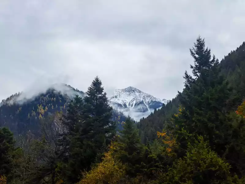 Let's talk about the itinerary of these two days first, at 5:40 a.m. on November 2, we set off for the East Railway Station, and the bullet train at 6:45 arrived at Jiuzhai Huanglong Station in an hour and a half. Although the station name is called this, it is still 40 minutes and 2 hours away from Huanglong Jiuzhai respectively, which is to protect the ecological environment and deliberately adjust the railway line. Our itinerary is to visit Huanglong during the day on the first day, stay overnight in Jiuzhaigou, visit Jiuzhaigou on the second day, and return to Chengdu in the evening. The itinerary is full, a bit like a special forces tour. The weather is still beautiful this weekend, and the first day is a sunny day, perfect for taking pictures. The weather forecast for the next day is for light rain throughout the day. In fact, it was a light rain for more than ten minutes after 8 o'clock in the morning, and then the sky was gloomy, and the sun did not come out until 11 o'clock, and the cloudy weather lasted until 4 o'clock in the afternoon, which can be regarded as giving enough face and allowing us to go home happily!