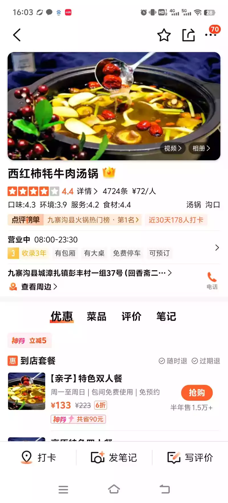 Dinner was a tomato-consuming beef soup pot, just at the mouth of the ditch, out of the scenic spot I really couldn't walk, and the taxi cost 20 per cent. The food is served quickly, the two-person set meal ordered, the child is not used to eating beef, but he also fished tomatoes to eat, accompanied by highland barley cakes. The scenic spot is cold, and I drink this soup warmly.