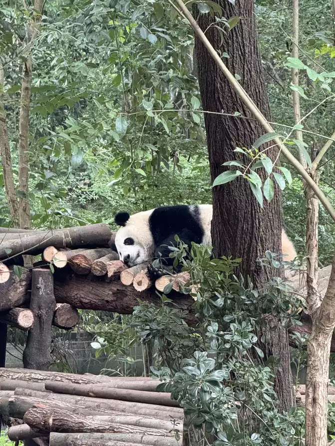 I returned to Chengdu from Jiuzhai for one night, and rushed the bus straight to Wolong early in the morning, but I didn't expect the time to rush very well, there were very few people, and I went straight to the Fubao Pavilion when I entered the park, and there was no queue, and there was no time limit, I could watch the sleeping posture of the female star to my heart's content. The view of the pandas in Wolong is very good, and the weather is sunny, and I saw a lot of cute pandas.