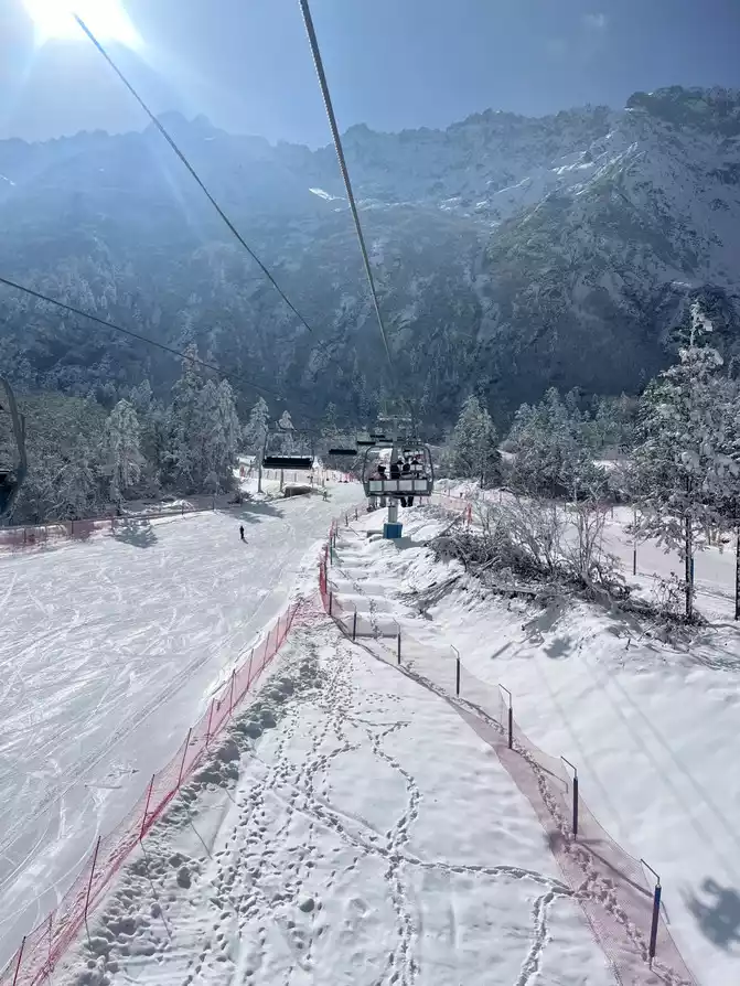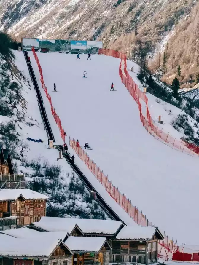 The newly opened ski resort is currently a large ski resort in Wenchuan. This year, a total of ten ski trails are open, 5 beginners and 5 intermediate trails, and the snow is wide and the snow quality is very good, and it is very comfortable to ski. However, the altitude is higher, with a minimum altitude of 3,276 meters.