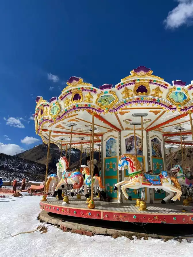 The first ski resort in Sichuan has relatively complete equipment and functions, and is smaller than other ski resorts, with many people and expensive skiing. The ski trails are divided into beginner/advanced, the difficulty coefficient is not large, and the slope is not very steep. Advanced is to ride the magic carpet to the top, and the treasure who can ski can go directly to the advanced level, and the ski trail is longer. The ski resort is located 800 meters walk next to the Leidongping boarding bus, no additional tickets are required, and entertainment items need to be paid.