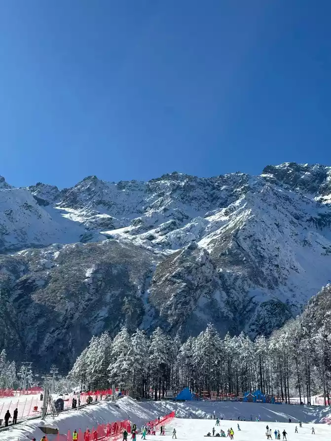 It is the closest natural ski resort in Chengdu, with a large scale and complete facilities, with a total of 6 ski trails. There are relatively many people, and skiing is charged by the hour, which is expensive.