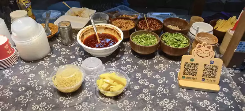 Rested in the hotel until the evening, hungry. Chengdu is a food paradise, but there is no suitable place. When I came to Chengdu, I had to make meat, and I went to a self-service hot pot restaurant called Tan Sanniang's fresh-cut beef, which was nothing more than that. I ate dragon fried hands, Yibin burning noodles, etc., the lights were on, and the rain and fog were hazy.
