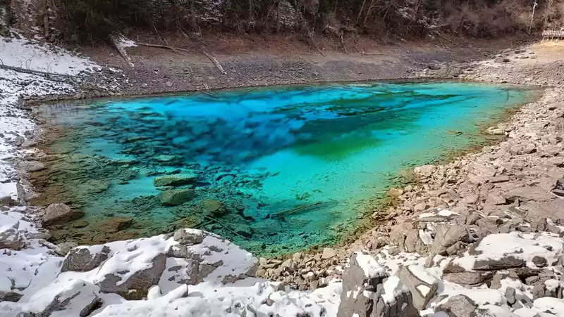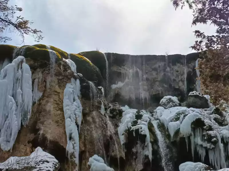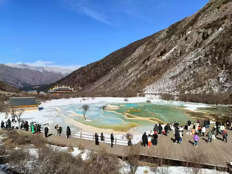 Thisseason, the scenery of Huanglong is not very good, only the colorful pond above can see the water, and the other attractions below are in a frozen state
