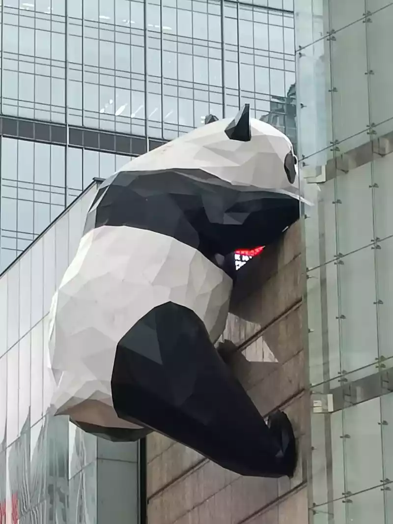 Exit D of Metro Line 2 is connected to IFS IFS IFC, take the elevator straight to the 7th floor to the rooftop to check in and climb the wall panda, and you need to queue up to take a photo with the giant panda, but fortunately there are not many tourists this season. The International Center also launched a package for 38 yuan with 4 photos, providing different styles of backgrounds for tourists to choose from.