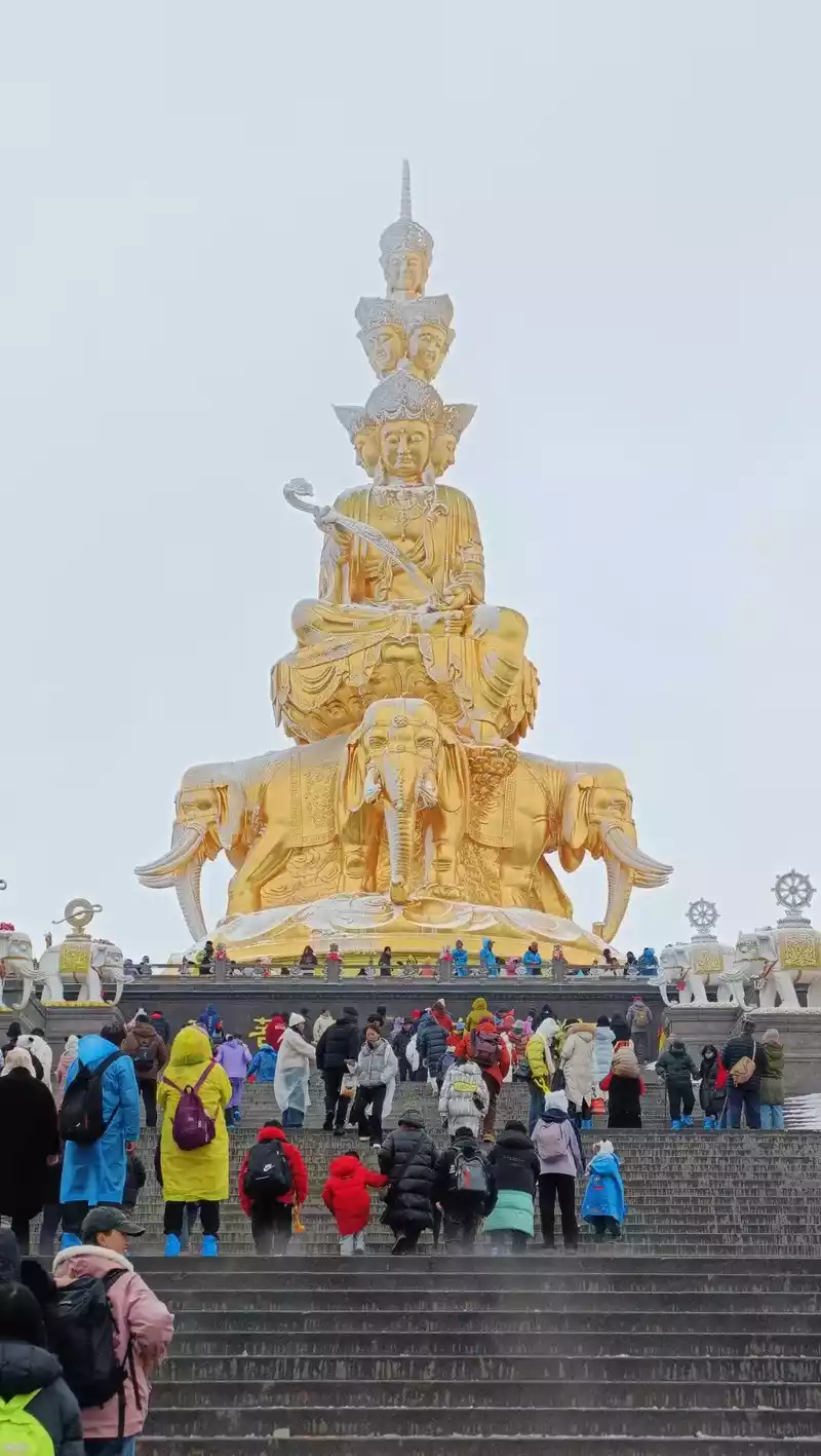 Whenwe came to Mount Emei, we worshipped the Bodhisattva Puxian Bodhisattva, and the dojo where the Bodhisattva said the Dharma was Mount Emei, Sichuan, among which there was Wanshou Temple, where the Bodhisattva was sculpted on the lotus platform carried by the elephant, holding a ruyi in his hand, riding an elephant, with a white elephant body, six tusks, and four legs stepping on the lotus seat.There is an elephant washing pool in Mount Emei, and legend has it that every time the Bodhisattva rides an elephant through here, he must draw water from this pool to wash the elephant before climbing to the golden peak.