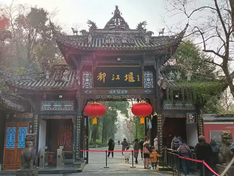 Dujiangyan has seven entrances, it is recommended to enter the park through Gate No. 4, visit from top to bottom, go straight to Yulei Pavilion after entering the scenic spot, go straight up the steps from the left side, go directly up to the escalator of the Buyun Corridor, buy a one-way ticket, arrive at the Yulei Pavilion on the top of the mountain, be sure to climb up to the pavilion to see, one side is the Chengdu Plain, the other side is the panoramic view of Dujiangyan, you can see Qingcheng Mountain, the river below is the Min River, which is the largest tributary of the Yangtze River. Go straight to the Erwang Temple, pass through the Douxi Pavilion, you can take pictures of the Yangtze River rushing at the mouth of the treasure, pass through the gatehouse of the key in western Sichuan, you can see the 100 best check-in slots recommended by China National Geographic, walk along the Songmao Ancient Road to the Erwang Temple, continue to walk to the Anlan Suo Bridge, cross the Anlan Suo Bridge, on the right hand side is the fish mouth, flying sand weir, in the middle of the mouth of the treasure bottle and the bottom of the fish mouth, the weir is out of the scenic spot, and you will go to the South Bridge to see the night view.