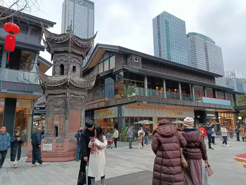 Opposite the IFS International Center is Taikoo Li, Daci Temple, the three attractions are more concentrated and easy to find, and there is a panda car downstairs in the IFS International Center, where there is a shuttle bus to the surrounding attractions, as well as the departure timetable, friends who come to Chengdu for the first time can go to take pictures and keep them for backup.
