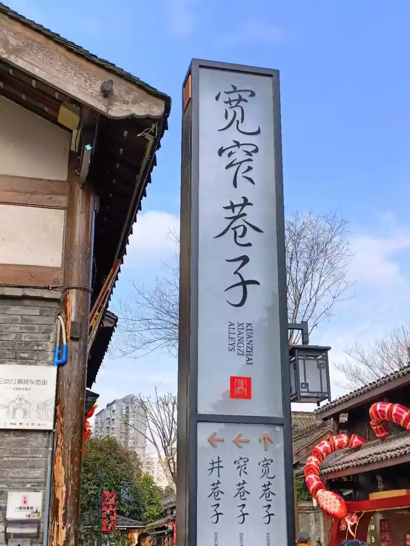 Kuanzhai Xiangzi is composed of three alleys of wide alleys, narrow alleys, and well alleys arranged in parallel, originally not called wide and narrow alleys, the wide alley is called Xingren Hutong, the narrow alley is called Taiping Hutong, and the well alley is called Ruyi Hutong (Mingde Hutong), in a city survey, the staff at that time casually marked the wider alley as "wide alley" after measurement, the narrower one is the "narrow alley", and the one with a well is the "well alley". Kuanzhai Alley is a relatively large-scale ancient street left over from Chengdu, and together with Daci Temple and Wenshu Monastery, it is known as the three major historical and cultural city protection blocks in Chengdu.