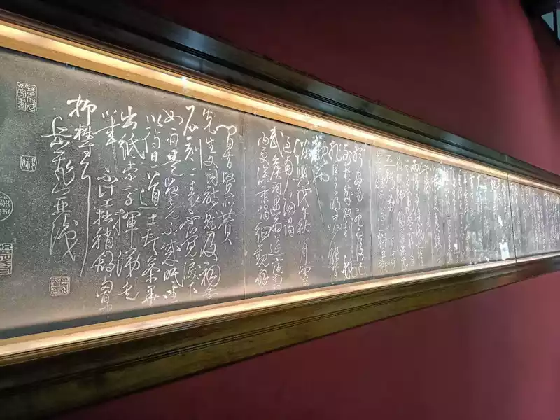 In the bonsai garden, there is a "Du Shi Calligraphy Woodcut Gallery" built in 1999, displaying more than 100 Du Shi calligraphy woodcut works, which are selected from the collection of thousands of authentic Du poems by celebrities of past dynasties, carved with nanmu wood, which is quite ornamental value, and its poetry, calligraphy, materials and craftsmanship are known as the "four uniques".