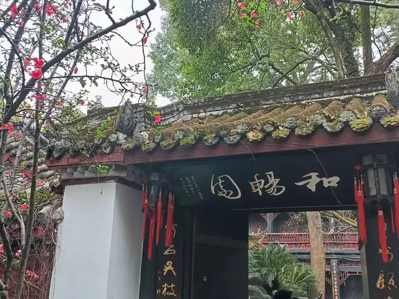 Theword "Caotang" on the plaque at the main entrance of Du Fu's thatched cottage in Chengdu was written by Aixin Jueluo Yunli, the seventeenth son of the Kangxi Emperor in the Qing Dynasty.