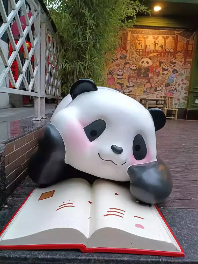After leaving Daci Temple, I walked to Tang Palladium Street, where Panda Bookstore was located. There are cultural and creative supplies sold in the store, which are very good as souvenirs, you can rest and eat desserts in the yard, panda elements can be seen everywhere, and each one is naïve.