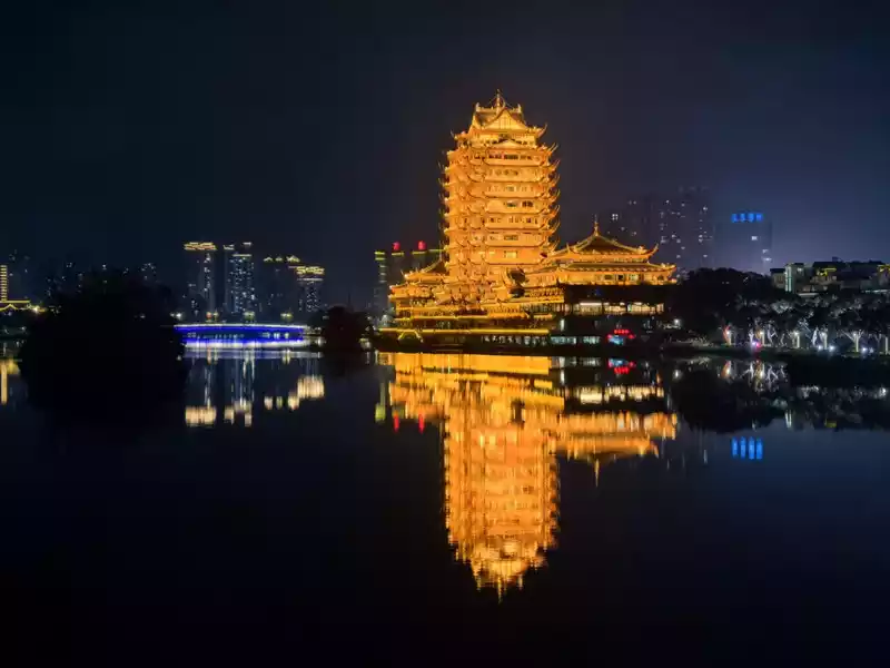 Meizhou Vision Building is currently one of the largest antique buildings in the country. During the Qianlong period of the Qing Dynasty, the prefect Cai Zongjian restored the Yuanjing Building, but it was destroyed again soon after; The current Vision Building was completed in 2004. Su Dongpo wrote the "Meizhou Vision Tower" at the invitation of his hometown, describing the excellent folk customs and work style of officials in his hometown, and expressing the social ideal of harmony between officials and the people, and political communication.
