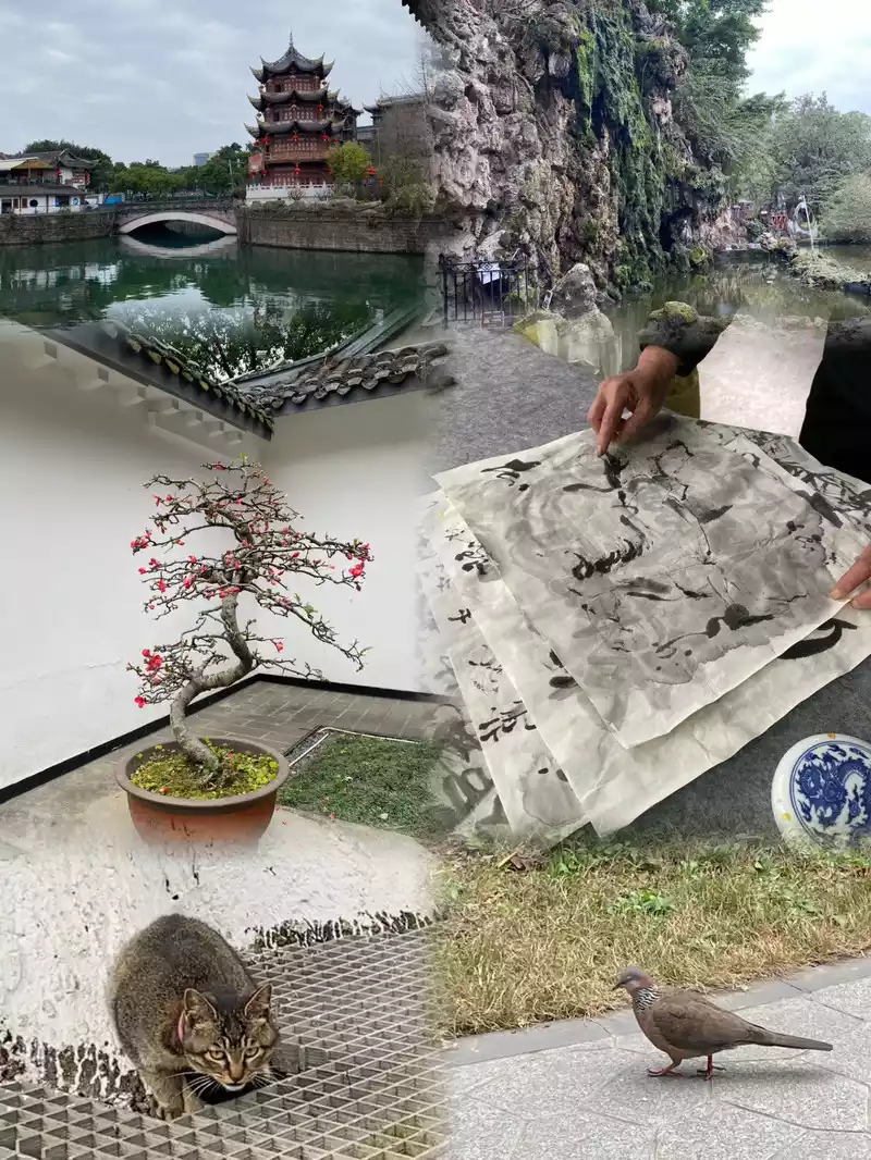 In the afternoon, I went to Baihuatan, this park is quite large, there is a Sichuan bonsai garden, and I met a folk god who painted horses with his bare hands without tools, and feasted his eyes. The park is very comfortable to walk around, there are many green plants, animals, and many uncles walking birds, which is really comfortable. Tired of walking over there, I found a chair to rest, eat something, and after resting, I went to the next stop - Qingyang Palace.