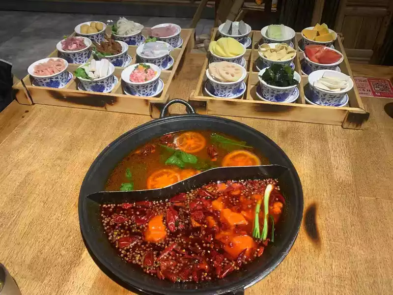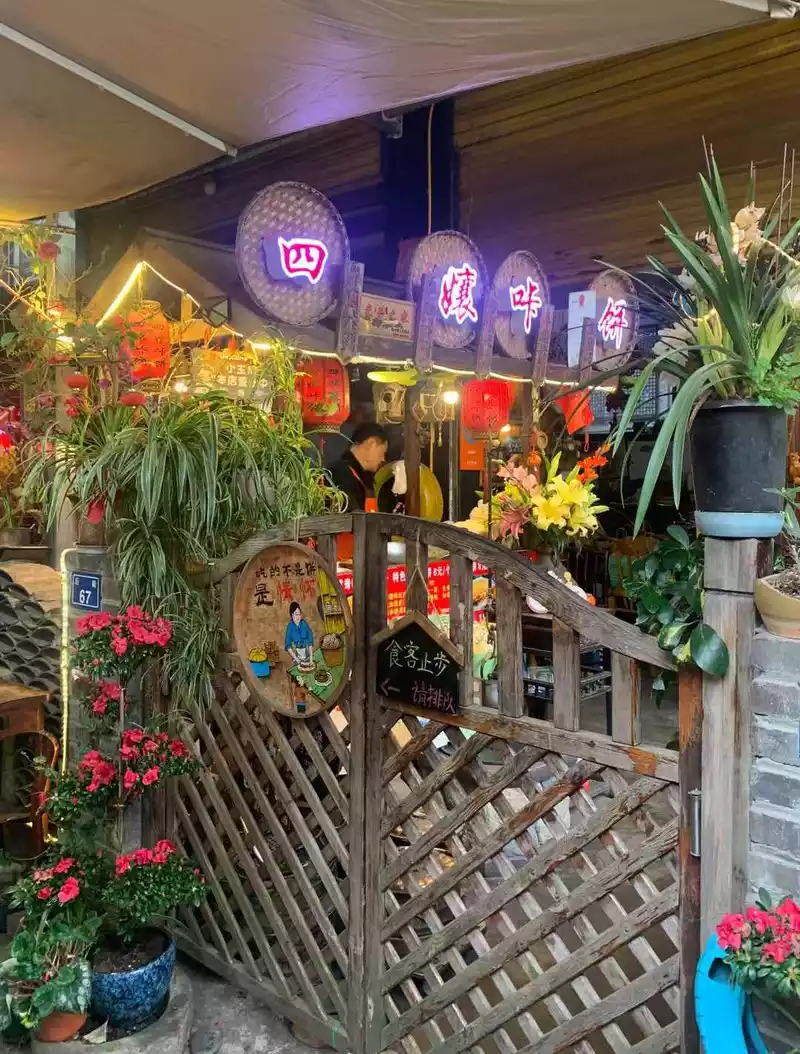 E: After watching Sichuan opera Chunxi Road near eating and drinking, I searched for a "Yu Shaoxia, Riverside Courtyard Hot Pot" on the Internet, the environment is really first-class, A good place to check in and take pictures, it just rained during the meal, and the atmosphere was CHILL.
