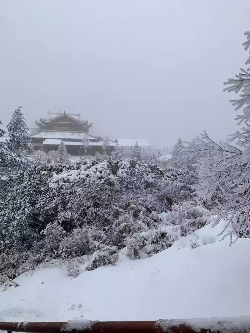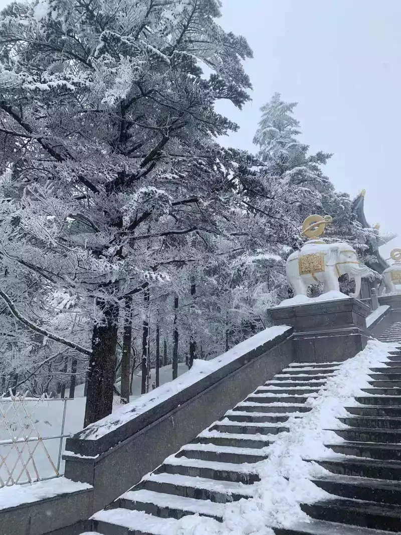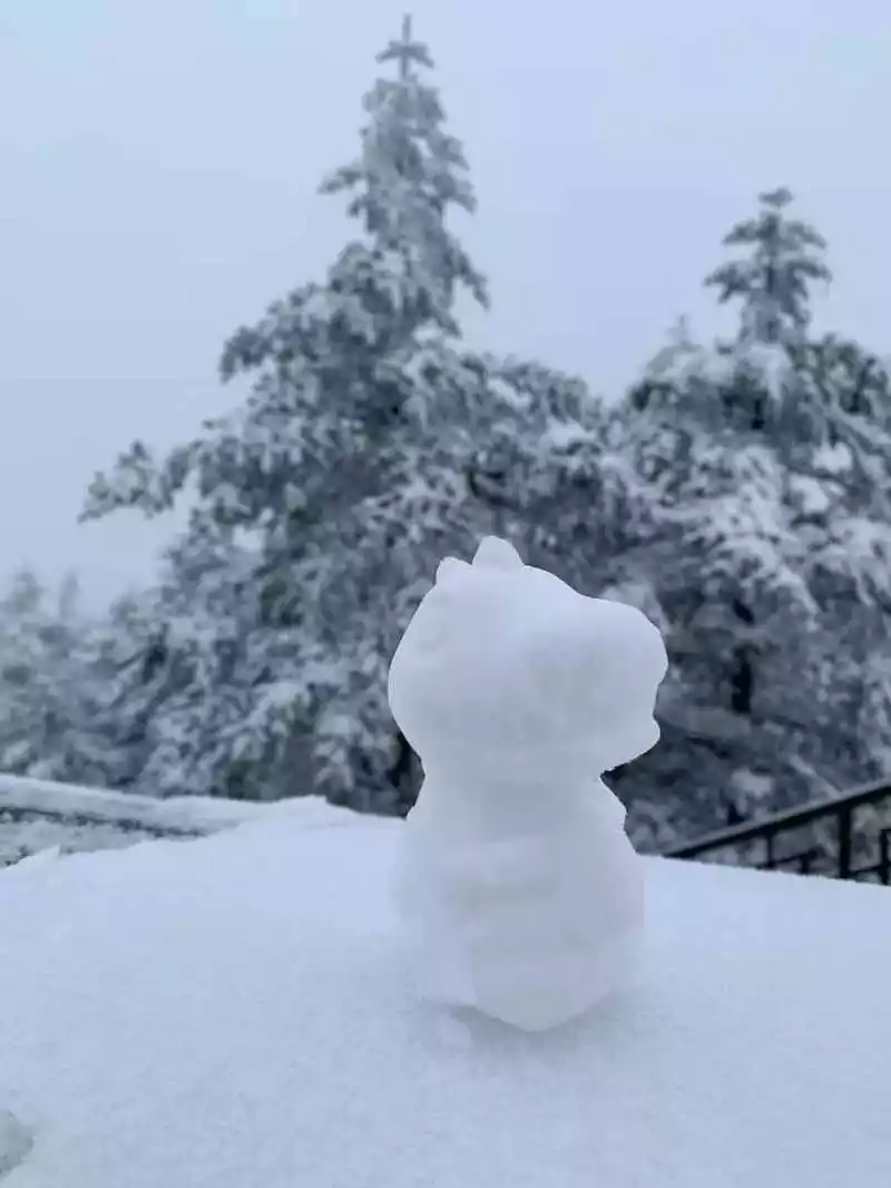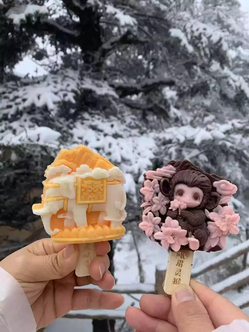 Since we live near the tourist service center in Mount Emei, after having a buffet in the hotel early in the morning, we walked directly to the tourist service center to take the bus, we booked tickets online in advance, and after arriving at the scenic spot, you can get on the bus directly by swiping your ID card, about 70 minutes of driving, the mountain road is still a bit detoured, it is recommended that friends with motion sickness take motion sickness medicine in advance, and it is very cold on the mountain, down, gloves, non-slip shoes, raincoats remember to bring. After arriving at Leigongping, we have to do a cable car up the mountain, about 3 minutes, to the last section of the road that must be climbed, due to the snow, the road surface is frozen, just 1.5 kilometers of road, abruptly walked for half an hour, but the scenery along the road is indeed first-class, and the Internet celebrity cultural and creative ice cream, it's really cute.
