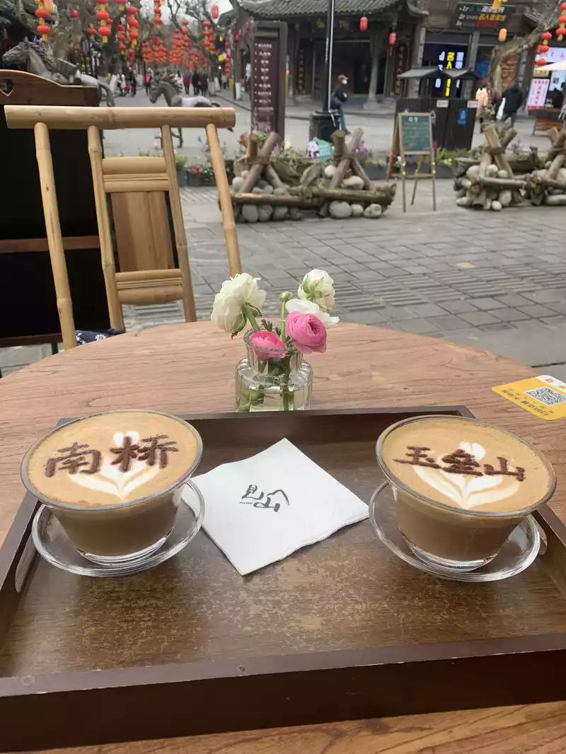 From the south gate of Dujiangyan, go directly through the pedestrian street, to Lidui Park, find a coffee shop with a good atmosphere, drink a cup of cinnamon and osmanthus latte, and make tea around the stove, It feels great.