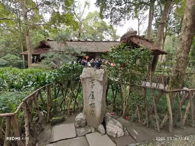 The former residence of the great poet in the thatched hut back then, the thatched cottage environment is quiet, there are several open-air tea gardens, small bridges and flowing water, plum garden bamboo forests, scattered, It constitutes a quiet and elegant picture.