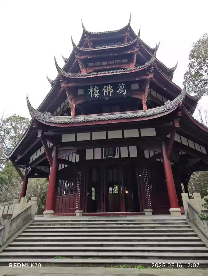 The "Ten Thousand Buddha Tower" in Du Fu's thatched cottage is supported by 24 pillars, and the four-story tower stands in the nanmu forest to the east of the thatched cottage, which was rebuilt on the original site in 2005. It has restored the style of Chengdu, a famous historical and cultural city, with "Chongli Pavilion in the east and Ten Thousand Buddha Towers in the west".