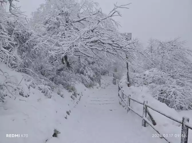 Golden Peak of Mount Emei, elevation data: 3079.3 meters. On windy and snowy days, you can only rely on hiking sticks and crampons to carefully descend the mountain.