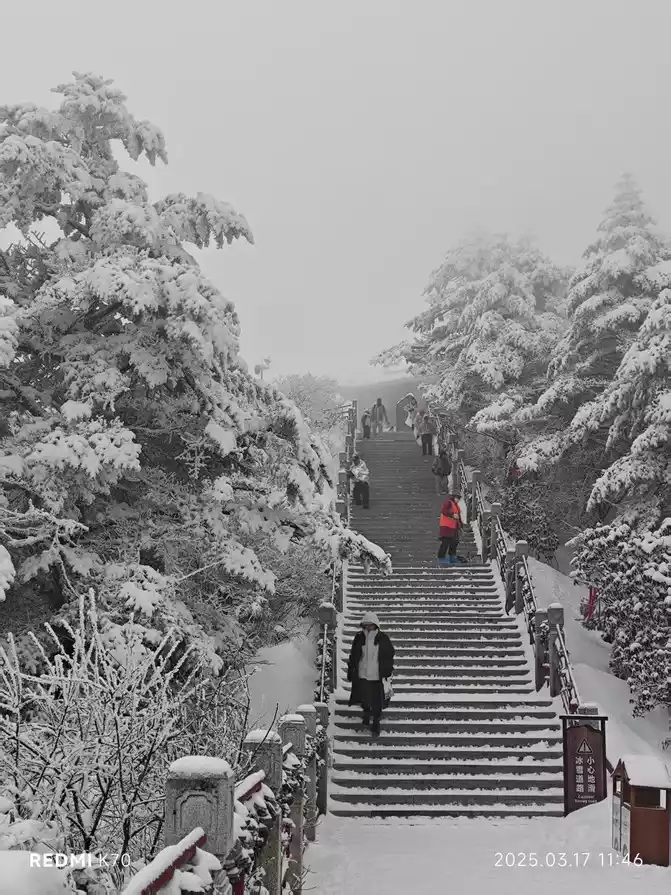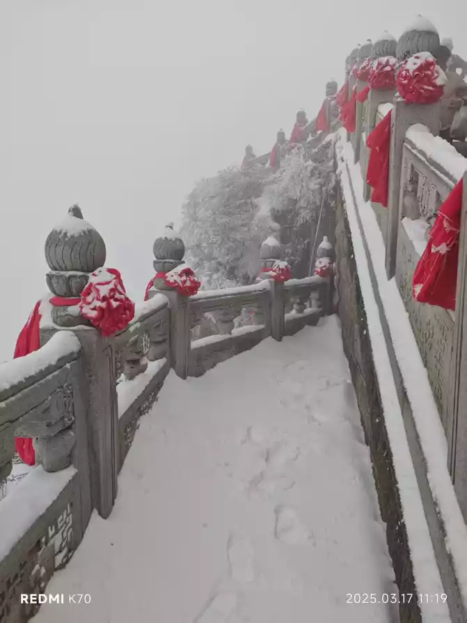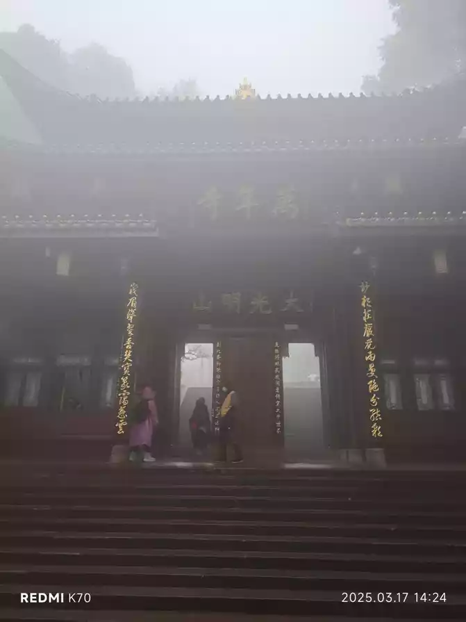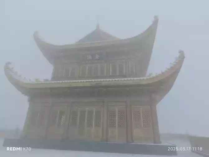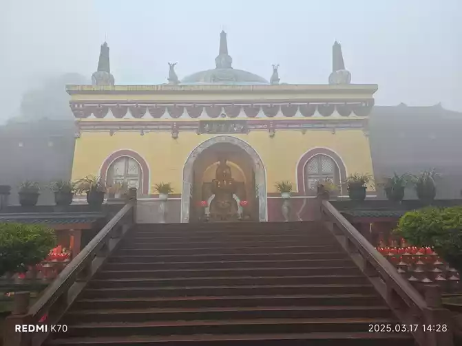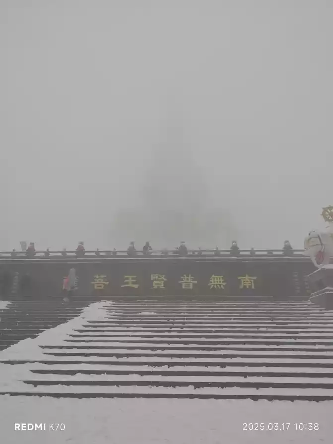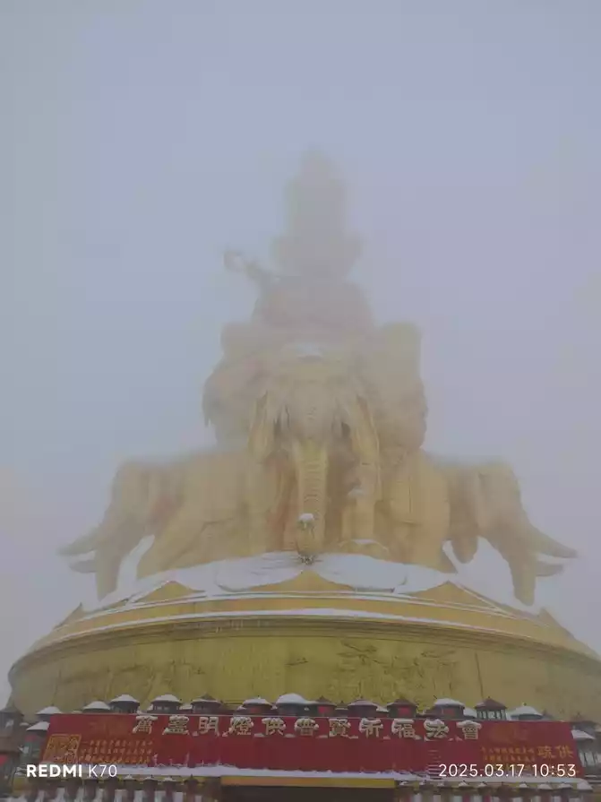 Although it was snowing lightly on the day of going up the mountain, the fog was also very large, and the visibility was about 100 meters, when you stepped on the steps to walk towards the Golden Dome Buddha, You will feel the big Buddha slowly emerging from the fog and walking towards you, the shock is indescribable!
