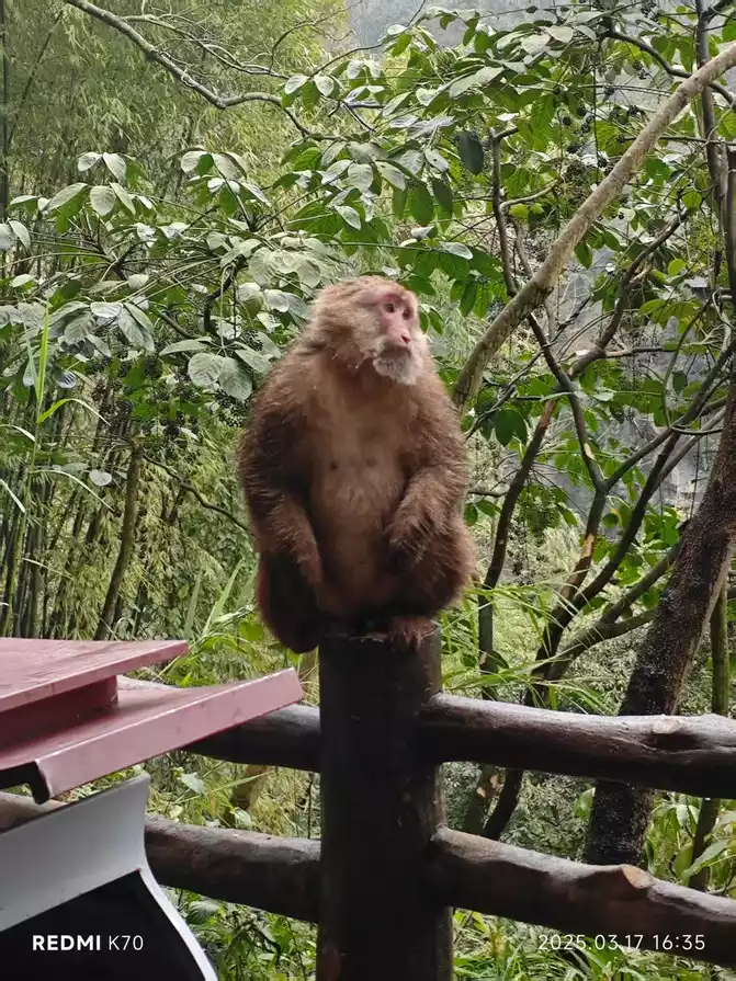 When I left Mount Emei, I finally saw the playful and cute monkey, perfect!