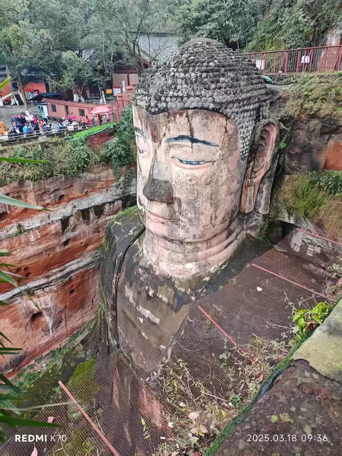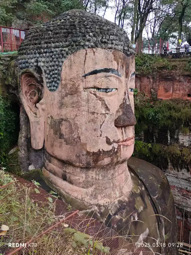 Reaching the Buddha's head level with the mountain, his body is very huge, his hands are on his knees, his feet are on the river, he sits upright by the river, and his demeanor is dignified. Although I have seen the Leshan Giant Buddha many times, when I arrived at the scene, I was still deeply shocked by the huge body of the Giant Buddha!