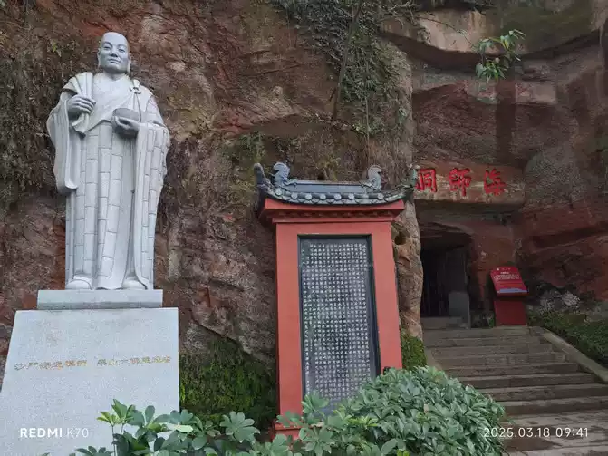 In the first year of the Kaiyuan era of the Tang Dynasty, Monk Haitong felt that the three rivers were confluent here, the water was turbulent, and there were often floods and shipwrecks, so he vowed to build a Maitreya Buddha statue to bless all living beings. Monk Haitong presided over the construction of this cave for 8 years, and later generations erected a statue here to commemorate him.
