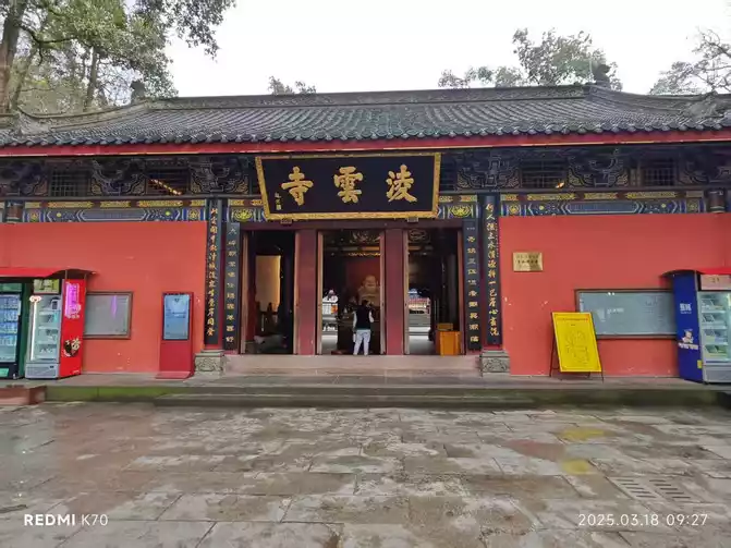 Lingyun Temple, also known as the Great Buddha Temple, is located on the side of Qiluan Peak in Lingyun Mountain, adjacent to the Leshan Giant Buddha. Founded in the Tang Dynasty, it was later abandoned. The temple was built in the Ming and Qing dynasties, and has a triple courtyard building composed of the Hall of Heavenly Kings, the Hall of Daxiong, and the Sutra Building.