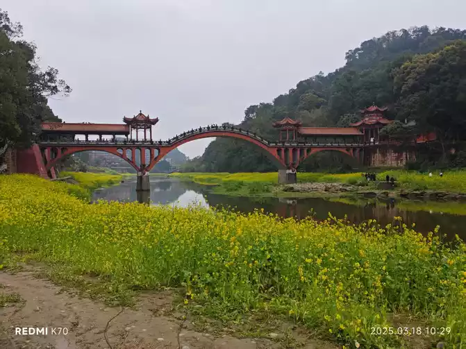 Haoshang Bridge is located between the two mountains of Wuyou and Lingyun in the Leshan Giant Buddha Scenic Area, spanning the Mahao River. The total length is about 100 meters, consisting of three arches, four pavilions and two corridors. The covered bridge is reflected on the quiet Ma Hao, and the leisurely pastoral scenery is intoxicating.