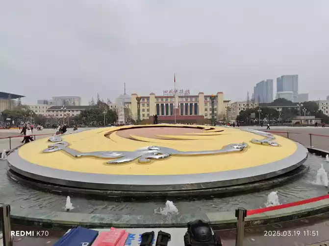 Tianfu Square is the political, economic and cultural center of Chengdu and the city's transportation hub, and its status is similar to that of Beijing's Tiananmen Square and Shanghai's People's Square. The huge sun god bird shape is located in the center of the Tai Chi pattern, and in the center stands the magnificent statue of Chairman Mao.