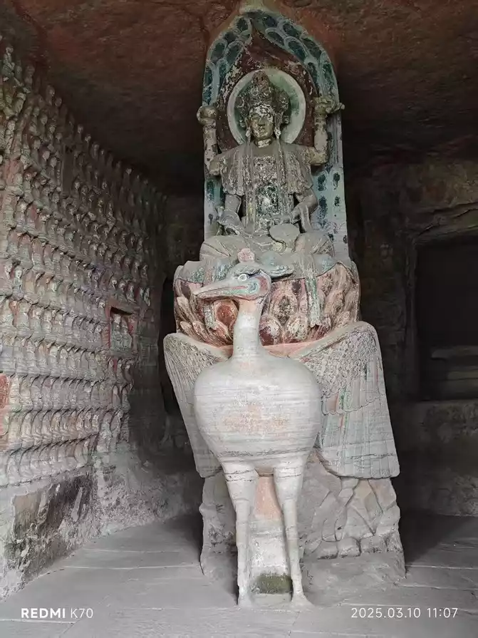 Peacock King Cave, the statue of the Peacock King is gorgeous, showing the fusion of Buddhism and Hinduism.