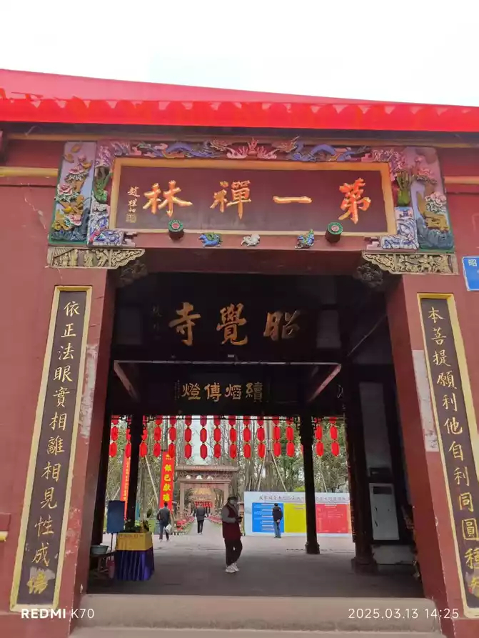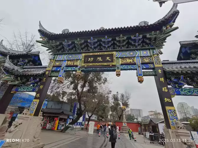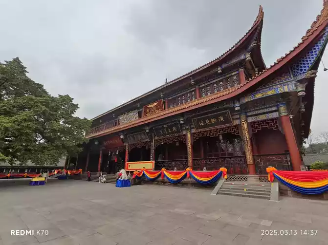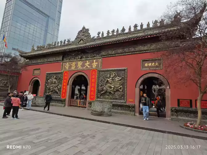 The Daci Temple in history was once grand in scale, and the Daci Temple seen today was rebuilt in the Qing Dynasty. Anshi Turmoil An Lushan occupied the capital Chang'an, and Emperor Xuanzong was evacuated to Chengdu, and when he saw the monks of Daci Temple giving alms to the poor on the street, he was deeply moved and inscribed the honorific title of Dashengci Temple. The stone plaque of "Ancient Great Shengci Temple" above the Shanmen Hall was carved in the sixth year of Guangxu, and was called "the first jungle of Aurora in ancient times".