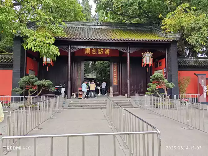 The Wuhou Temple Museum is a famous museum of the ruins of the Three Kingdoms, which was built in Huiling, where Liu Bei was buried after the death of Liu Bei in the Shu Han Dynasty, and the location was personally chosen by Zhuge Liang. After Zhuge Liang's death, the Wuhou Temple was built next to Huiling. In the Hongwu period of the Ming Dynasty, it was renovated by Zhu Chun, the King of Shu, and the Wuhou Temple and Huiling were integrated together to form the only ancestral temple in the country where the monarch and his ministers were worshipped together. The ancestral hall enshrines the tablets of Liu Bei and Shu Han military generals and civil officials, and is known as the "Holy Land of the Three Kingdoms" and a national first-class museum.