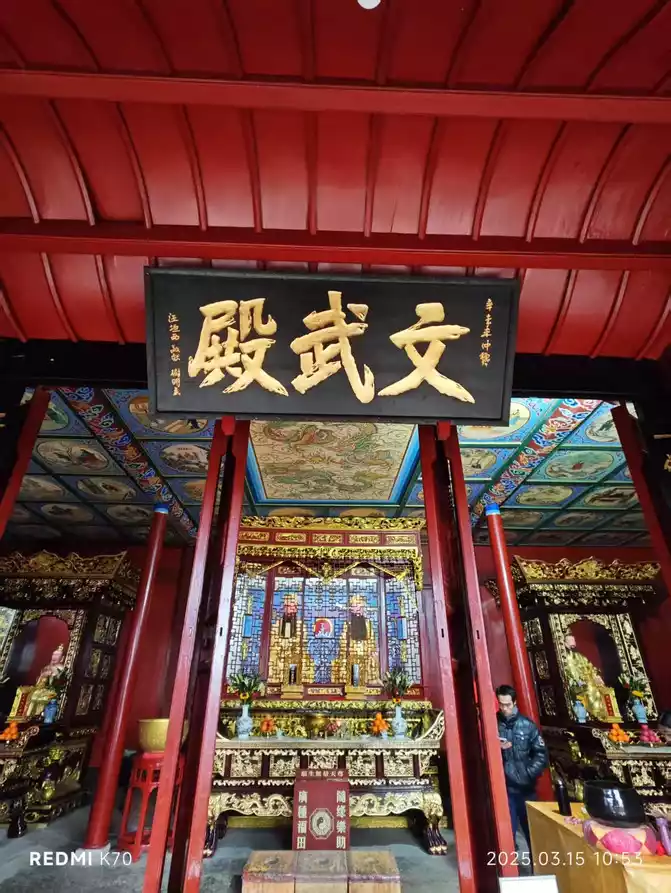Donghua Hall is about 100 square meters, five rooms long, and the left and right niches are dedicated to Lü Chunyang and Zhong Liquan.