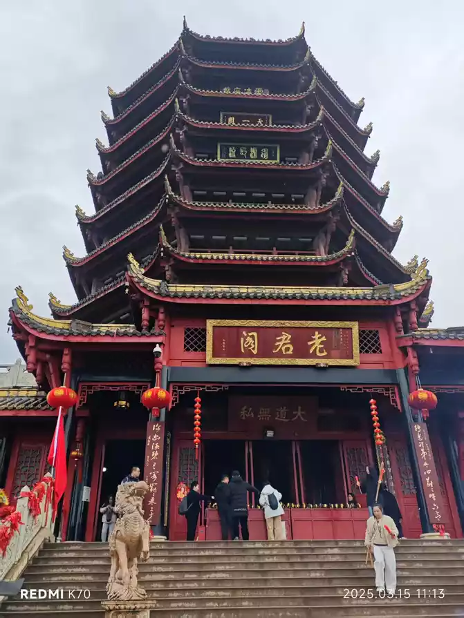 Laojun Pavilion is located on the top of the first peak of Qingcheng, and there is an original echo pavilion on the top, which means "climb high and call, all the mountains respond", which is to enjoy the sunrise, An excellent location for magic lanterns and wonders of the sea of clouds, it was rebuilt after being destroyed by the "5.12" earthquake in 2008, and was renovated into a pavilion in the late 80s of the 20th century.