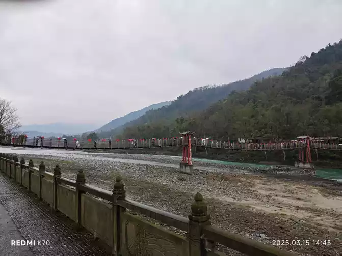 Standing on the bridge, overlooking the rushing river, the turbulent momentum makes people feel the power of nature. The water of the Min River is endless, shimmering in the sunlight, like a silver dragon.