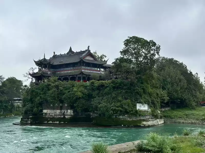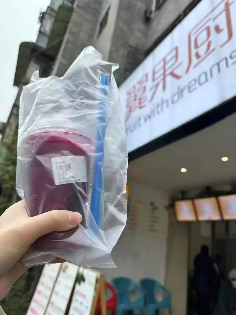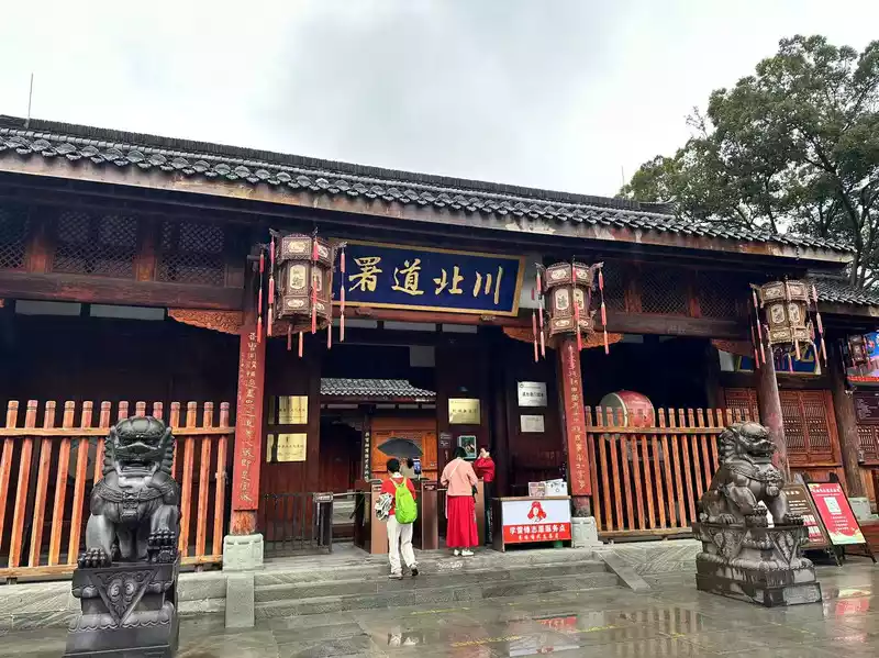 After a satisfying meal, I walked out of the ancient city and just bought a cup of Dujiangyan specialty fruit tea, pomegranate and dragon fruit from "Yingguochu". Then take a taxi to the entrance and exit of Qinyan Tower in Dujiangyan Scenic Area.