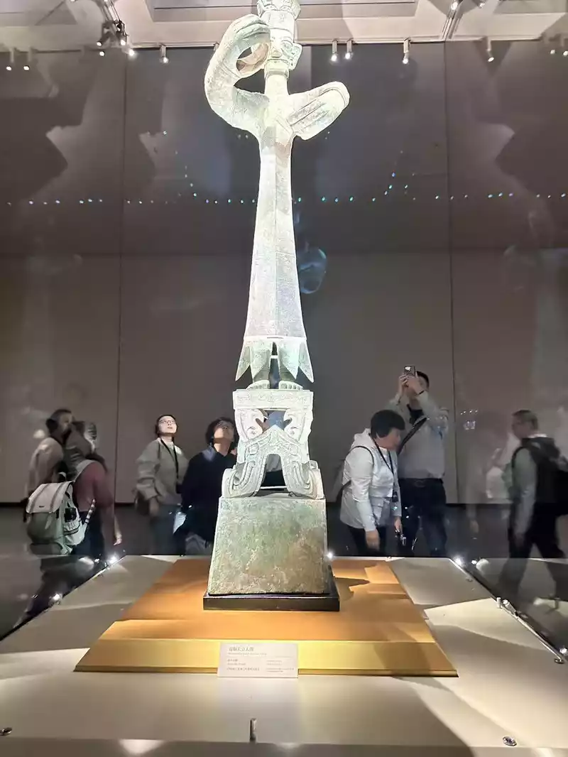 Day 4 (Tuesday, October 22): Sanxingdui + Chengdu Museum + Luodai Ancient Town: The highlight of the day was the Sanxingdui Museum in Guanghan, a museum whose awakening after thousands of years of slumber has astonished the world. To get in right before it opened, we took the 7:17 Chengdu East train to D1902 and then the 7:41 Guanghan North train. From there, we took a taxi for about 15 minutes to the Sanxingdui Museum. Although we arrived early, there was still a line, but we were able to enter quickly upon opening. If you're among the first group to enter the museum, we recommend you go to the second floor and explore in reverse order, starting with the bronze sacred tree at the exit of Area 3, Heaven, Earth, Man, and Gods.Then return to the first floor to visit exhibition areas 1 and 2. It is still recommended to enter from the exit, and then visit exhibits such as the golden mask, golden scepter, and bronze standing figure in turn.