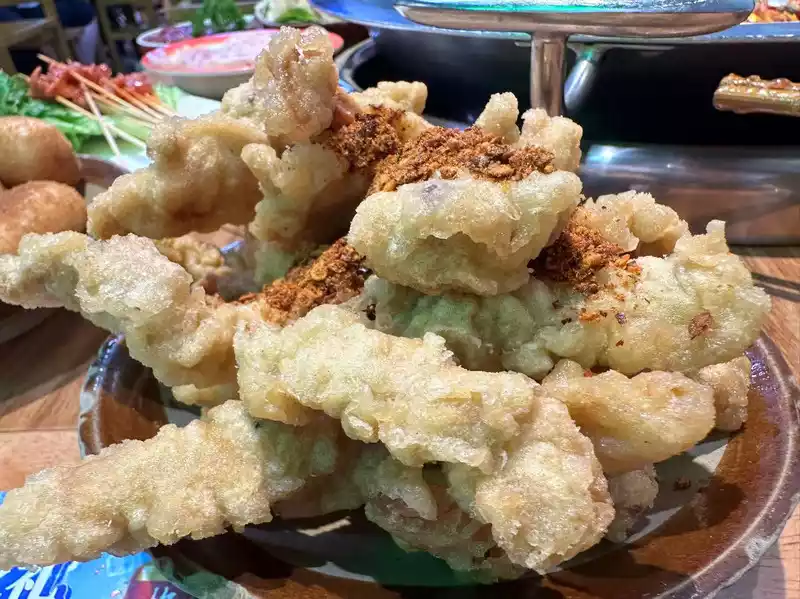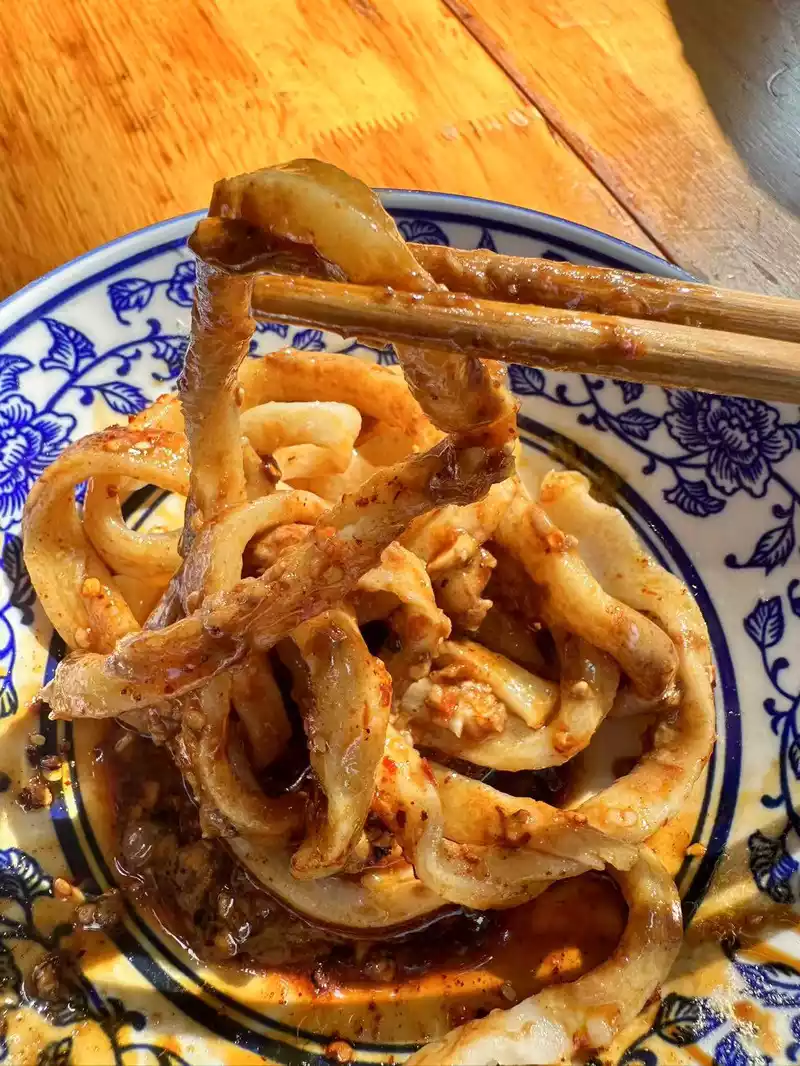 It was around 5 o'clock when we took a taxi back to the ancient city and picked up my mom to go out for food. Dujiangyan is also a gathering place for delicious food.