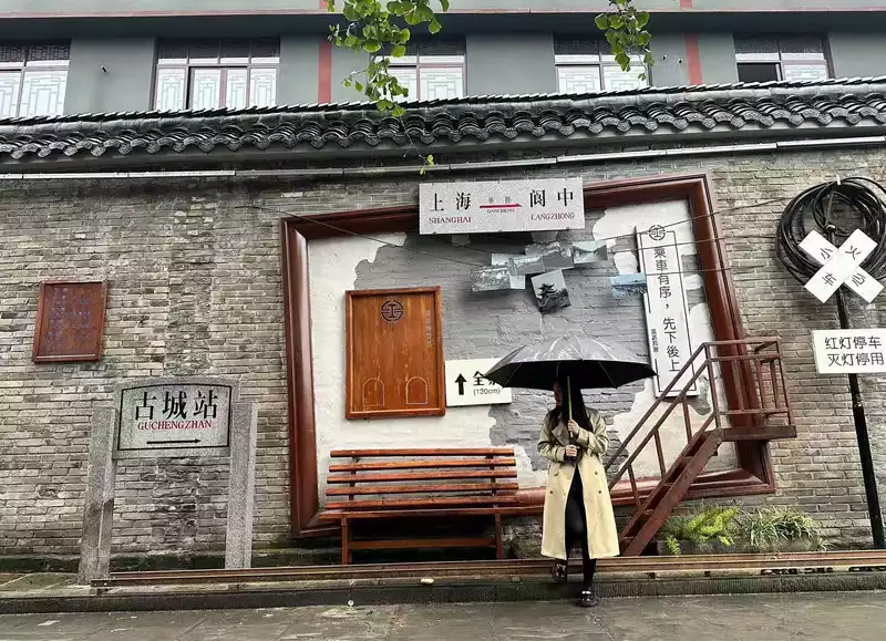 After exiting the station, we took a taxi for ten minutes to reach Langzhong Ancient Town. After checking in, it was unfortunately raining all the time. I happened to be tired from traveling early in the morning, so my mother and I rested in the B&B. It was quite pleasant to just look out the window quietly. The rain was a little lighter around dinner time, so my mom and I went out to find something to eat.